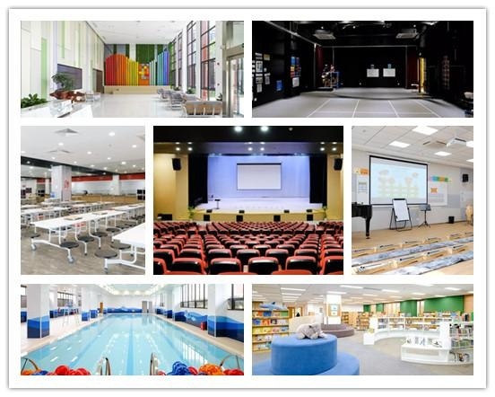 宽敞、明亮的图书馆,为学生提供了海量丰富的教育资源;安全、先进的科学实验室,让孩子们在科学的海洋中探索和遨游。可容纳600多名学生的剧场配备了最先进的多媒体灯光影像设备,为孩子们的梦想搭建起表演艺术的舞台;多功能新风式体育馆,让学生们尽情挥洒青春的汗水;全隔音式小型乐器练习房,为孩子们铺垫登顶音乐殿堂的红毯。而各种各样的多功能教室,为学生们提供了手工、烹饪、园艺、航模、机器人、动漫、舞蹈、曲艺、书法、绘画等丰富多彩的选修课程。